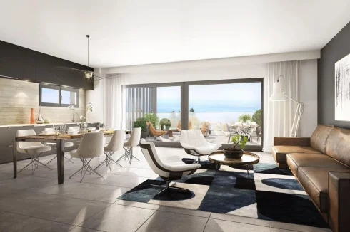 Penthouse in Evian with 3 bedrooms. Other lots and floor plans are available on request. Elegantly perched on the border between France and Switzerland, Evian?s internationally renowned healing waters lure health-conscious visitors from around the world. Its city center offers shops, restaurants, Golf Course and ferry port with regular shuttles to Lausanne, taking 35 minutes. On the heights of Evian les Bains, the project rises in the heart of a 3 hectare park and offers a breathtaking view of the city, Geneva Lake and Lausanne located on the opposite shore. Modern and well designed, the project offers high standard features, and the spacious terraces or balconies overlooking the lake add beauty on the properties. For more information, we will be more than happy to assist you...
