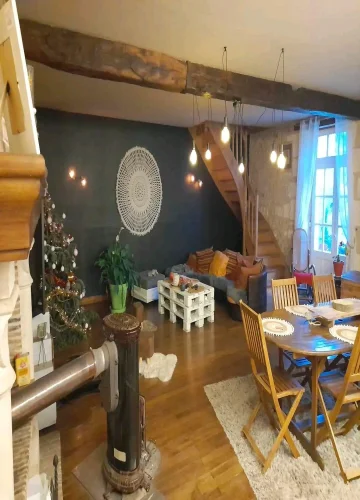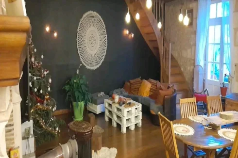 Former 18th century coaching inn, exposed stone and beams. Floor area of the house with the barn, on the land registry 371 M2, living area 264.66 M2. Surface area of the cadastral plot 3945 M2 which includes the house and the garden. The garden part around the house, surface area of 2906 M2 in total with a part on the side of the house which is buildable (2155M2). Residential house with a barn of 89 M2 and a shed.