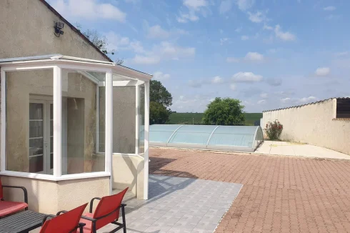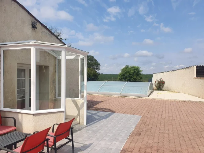 Pleasant covered terrace facing the 10 x 5 m swimming pool covered with a dome.