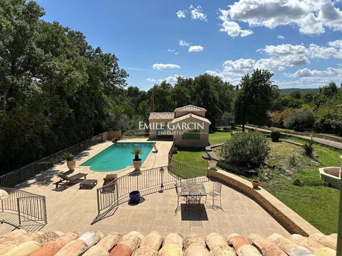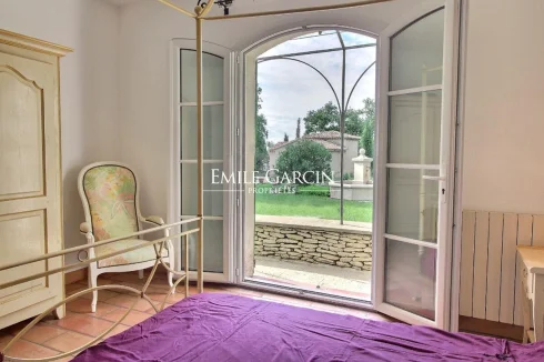 Tucked away in the heart of a sought-after village just 10 minutes from Uzès, this exceptional property stands out for its peaceful setting, authentic character and high-quality finish. Sitting on 4,500 sq.m of magnificent landscaped grounds and presenting traditional architecture, the house features a large open-plan living area on the ground floor made up of kitchen, dining room and living room with fireplace. On the same level, there are two bedrooms, a large bathroom, a dressing room, an office and a boiler/laundry room. Upstairs, you will find two additional bedrooms with a shared shower room. To the south, the house opens out onto a large Vers stone terrace. The leafy grounds are equipped with a large swimming pool (10 x 5m) surrounded by Vers stone terraces. An outbuilding is currently used as a gym and games room, but could easily be converted into a guest house. Additional outdoor facilities include a beautiful stone hut, a large three-car garage and stables. This property is a rare find in a sought-after setting, presenting an idyllic blend of charm, tranquility and functionality. It would make an idyllic primary or secondary residence.