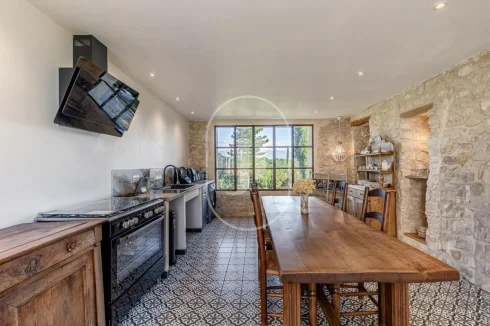 The reception rooms, bathed in natural light, open onto the outdoors and provide an ideal setting for convivial moments. Two kitchens – a main one and a summer kitchen – allow you to enjoy gourmet experiences throughout the seasons.
