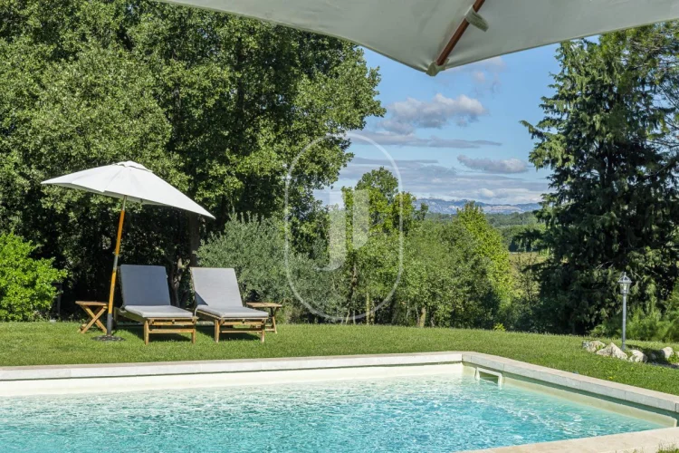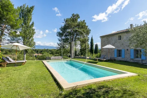 Outdoors, a heated swimming pool (9 x 4 m) blends harmoniously into a landscaped garden of around 5,300 m², enhanced by breathtaking views of Mont Ventoux and the Dentelles de Montmirail.