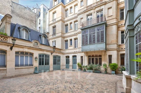Located on the 2nd floor, it benefits from rare volumes with 3.60 m high ceilings and a large south-facing balcony opening onto an elegant courtyard.