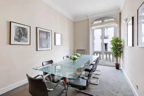 Rare address between the Élysée Palace and the Place de la Madeleine, in the heart of one of the most sought-after districts of the capital. In a corner building with remarkable common areas, this large 354 m² mixed-use apartment offers an exceptional setting for a private residence as well as for a prestigious professional address.