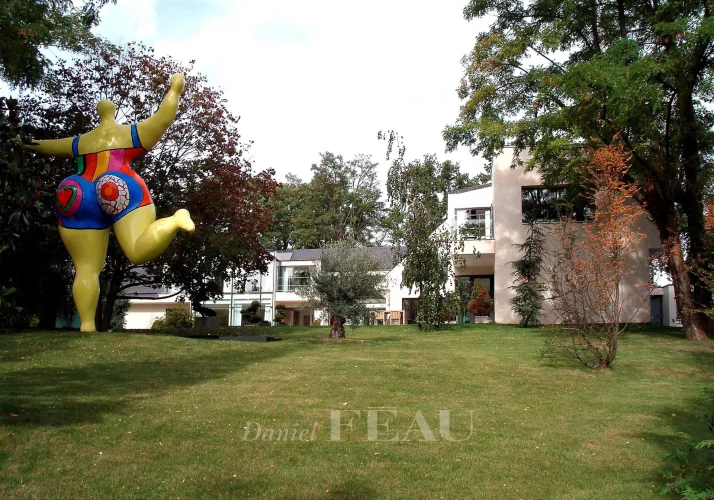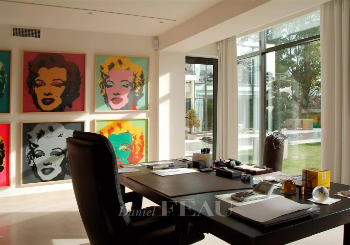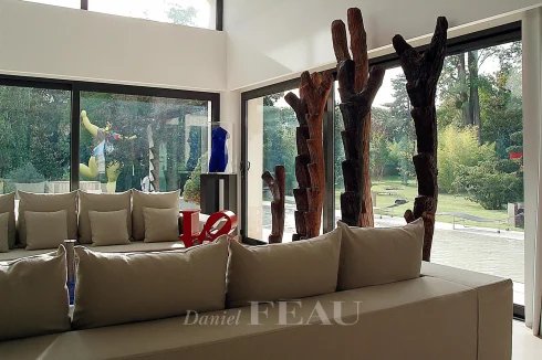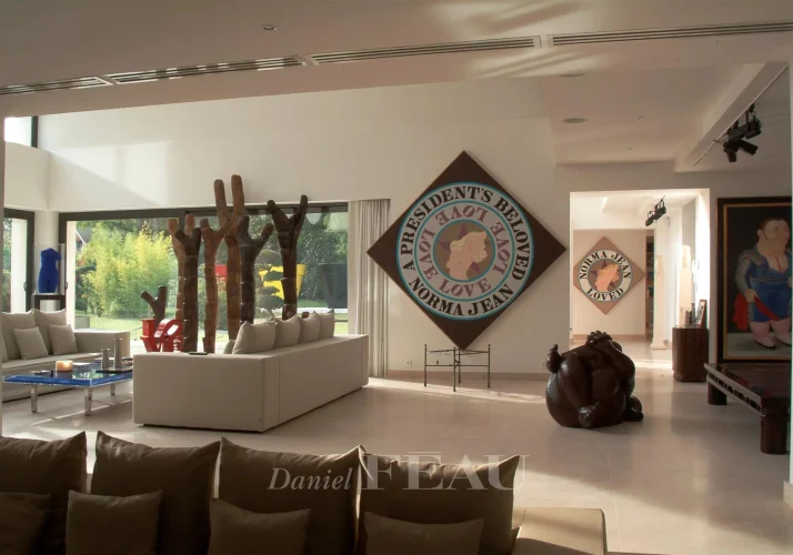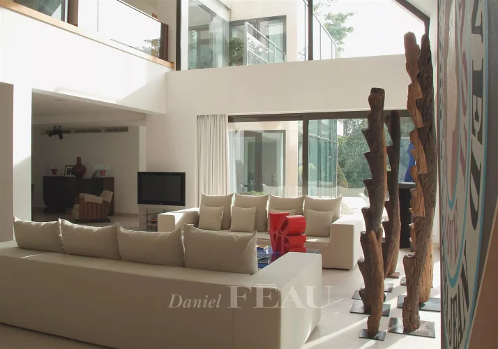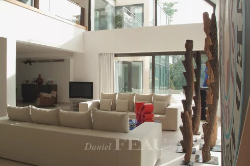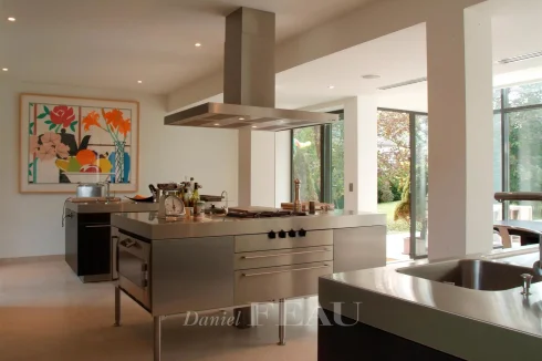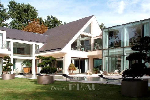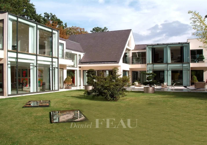 This exceptional architect-designed property bathed in sunshine is set in 3782 sqm of peaceful south-facing landscaped grounds near Saint-Cloud golf course. Offering about 800 sqm of superb living space, it includes a spacious garden-level living/reception room with a fireplace, a dining room, a generously proportioned equipped kitchen, a study (all opening onto a terrace and the garden), and an indoor swimming pool with a jacuzzi and a shower room.