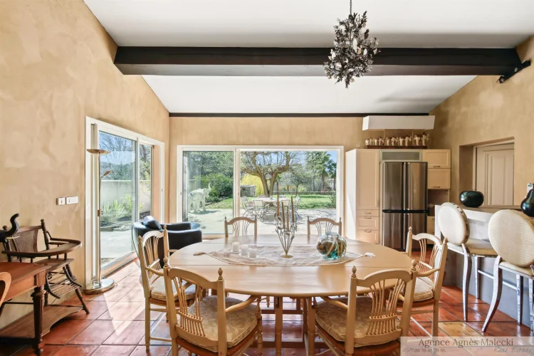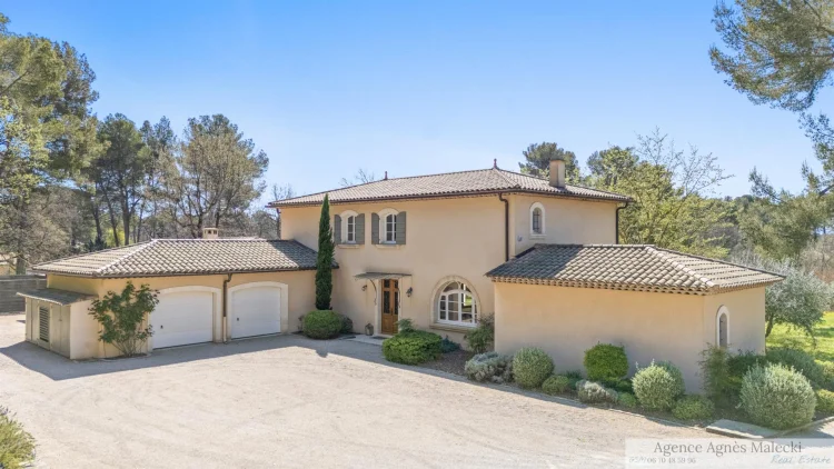 Trans En Provence, La Motte side (video in the ad) - Elegance and Serenity in the Heart of Nature. Nestled in the heart of a preserved 8000 m2 estate, this magnificent 300 m2 country house built in 2003 offers you an idyllic living environment, combining modern comfort and timeless charm. Sheltered from view and bathed in tranquility, it stands out for its generous volumes and high-end amenities. Upon entering, you will be charmed by the brightness of the vast living-dining room, a true space of conviviality, opening onto the lush garden. The fully equipped kitchen is complemented by a utility room and a laundry room, guaranteeing practicality and functionality on a daily basis. The ground floor also features a beautiful suite with bathroom, dressing room and direct access to the exterior, as well as an additional shower room and a guest toilet. Upstairs, an elegant office-library offers a privileged work or relaxation space. Two large bedrooms, each with their own bathroom and dressing room, complete this level with refinement. Designed for entertaining, the property extends outside with a vast pool house fully enclosed and heated by a pellet system, offering a living space in all seasons. The landscaped environment, enhanced by a majestic oak grove and olive trees, gives the whole an authentic charm and a soothing atmosphere. In terms of parking and storage, everything has been planned: two garages adjoining the bastide, a carport for three vehicles, as well as a large independent garage of 90 m2 on two levels located at the entrance of the property. A haven of peace where nature and elegance combine harmoniously, for a life in complete tranquility only a few minutes from amenities. A rare property to discover without delay . Trans-En-Provence near La Motte (video available in the listing) ? Elegance & Serenity in the Heart of Nature. Nestled within a preserved 8,000 m2 estate, this magnificent 300 m2 bastide , built in 2003, offers an idyllic lifestyle where modern comfort meets timeless charm . Completely private and bathed in tranquility , the property stands out for its generous spaces and high-end finishes. From the moment you enter, you'll be enchanted by the light-filled and spacious living-dining area ? a true haven for relaxation and entertaining? opening directly onto a lush garden. The fully equipped kitchen is enhanced by a pantry and laundry room , ensuring everyday practicality and ease of living. On the ground floor , a beautiful suite awaits you, complete with bathroom, dressing room , and direct access to the outdoors . You'll also find a second shower room and guest toilet on this level. Upstairs, a refined office-library offers the perfect space for work or quiet reflection. Two large bedrooms , each with their own private bathroom and dressing area , add to the sense of elegance and comfort. A Home Designed for Entertaining? All Year Round. The bastide extends seamlessly into the outdoors with a fully enclosed and pellet-heated pool house , creating a comfortable living area in every season . The landscaped grounds , enhanced by majestic oak trees and centuries-old olive trees, add a touch of authenticity and serenity to the setting. When it comes to parking and storage, everything has been thought through: Two attached garages. A carport for three vehicles. An independent 90 m2 two-level garage at the entrance of the estate. A peaceful haven where nature and elegance live in perfect harmony. All this, just minutes from shops and conveniences. A rare gem not to be missed.