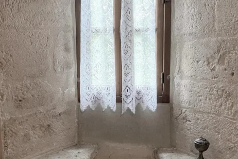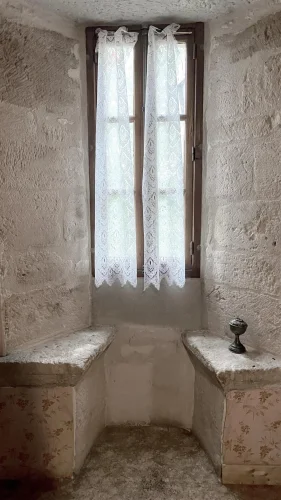 Upstairs, the night area includes two bedrooms with authentic stone architectural details, a bathroom, and a separate WC.