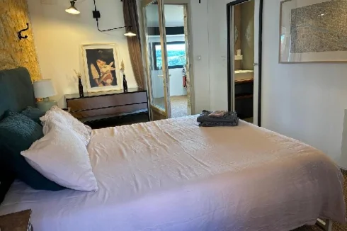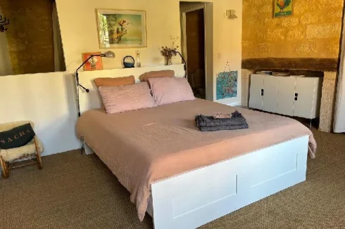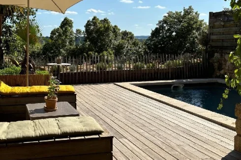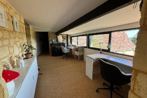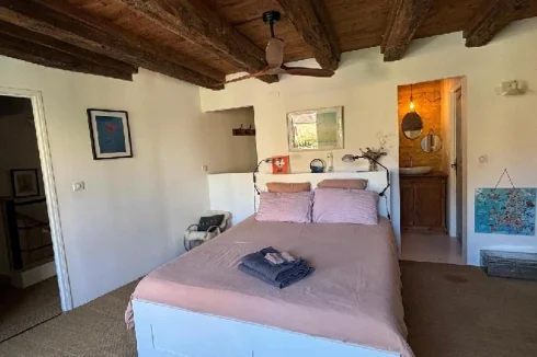 Entrance to living room (40m ²) with fireplace, exposed beams and stone, kitchen (29m ²) open to the dining room (17m ²), access to the terrace overlooking the valley, lounge and dressing room (27m ²), laundry, independant toilet.