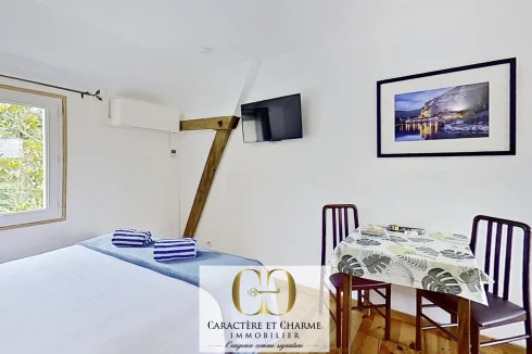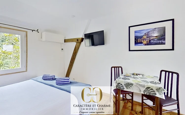 Sarlat. A unique property on the market, particularly well thought out and executed. This house is divided into a renovated main accommodation of 120 m2, very pleasant and very cozy, on the garden level, as well as 7 independent studios or guest rooms, completely restored and ready to be rented (2 on the ground floor and 5 upstairs with outdoor access and panoramic terrace on Sarlat). The entire property offers an intimate garden, preserving calm and relaxation, with outdoor terrace, lawned areas and heated swimming pool. A place remarkable for its quality and its very interesting business potential, because each studio is equipped and therefore completely independent, especially for breakfasts (turnover: 82,000 euros over 6 months. Result: 50,000 euros). Very high quality, these allow access to Sarlat on foot, and perfect comfort, for a few days or the week. The main accommodation has been completely restored very recently and offers excellent services. Large living spaces, a bay window with access to the terrace and private garden with summer kitchen. A large master bedroom, and a possible second one, currently used for storage, and a professional kitchen bringing a 'industrial loft' spirit to the most beautiful effect. A quality of life, enhanced by a good profitability and simple management, make this property a complete product, perfect for 1 or 2 people, in a modern but relaxing atmosphere, inside and out. An oasis in the heart of Sarlat, where personal life and work harmonize ideally. This place is an enchantment that awaits you to change your life, or to use the whole thing as a rental. (Sold furnished for the 'activity' part). Private outdoor parking with 11 spaces.