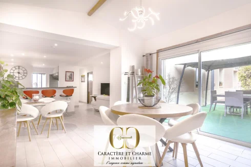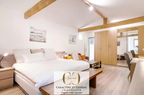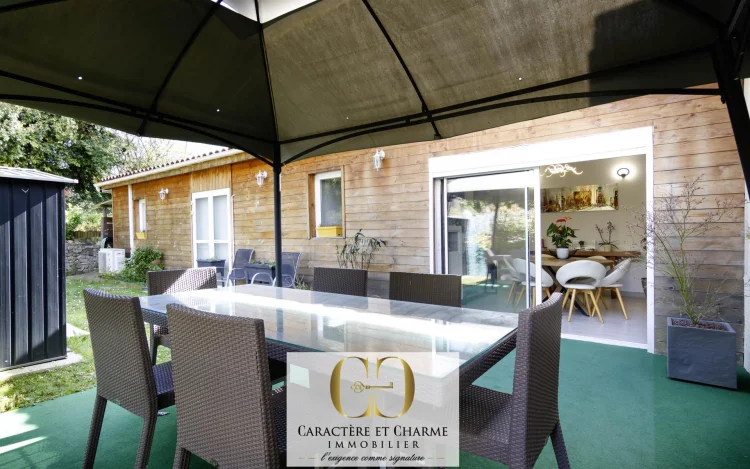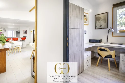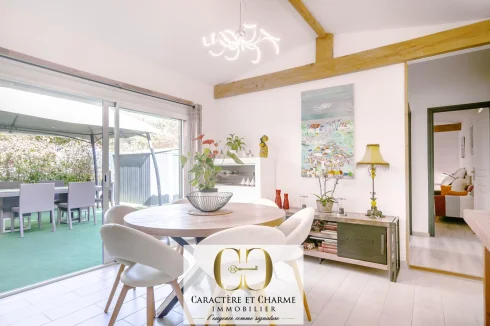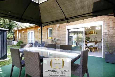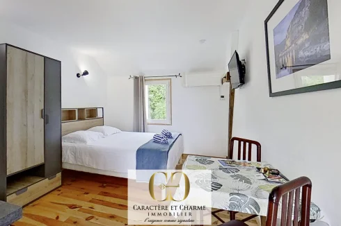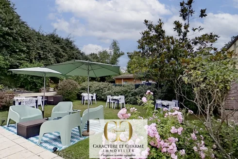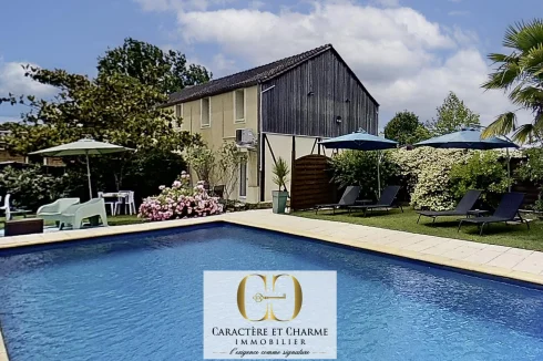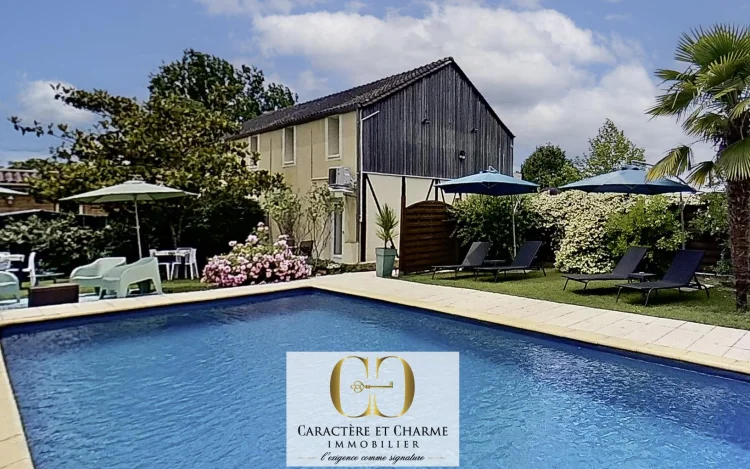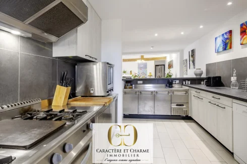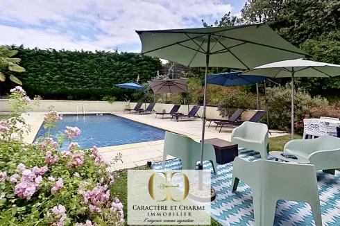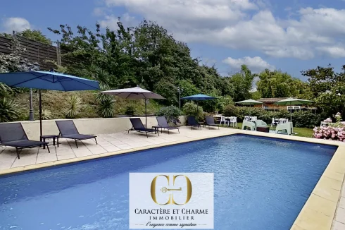 Technical details : Pool heating by heat pump - 9 x 4.5 swimming pool - Water softener - Furnished and equipped summer kitchen - Reversible air conditioning - Outdoor bicycle garage - Activity furniture included in the sale price - Private kitchen equipped with stove, oven, professional stainless steel refrigerated cabinet, wine cellar - Hot water by town gas boiler - Fiber internet - VMC.