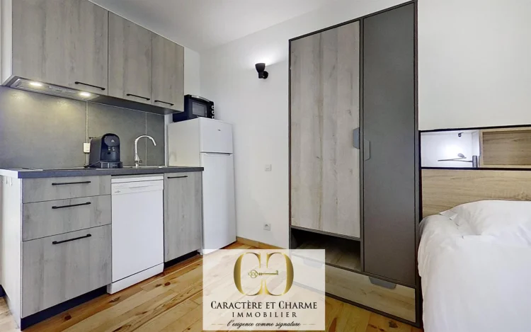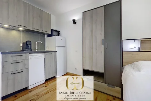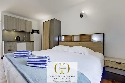 7 Studios : Between 18 m2 and 20 m2 with a fully equipped kitchenette. Hob, fridge, storage, utensils. Reversible air conditioning. Bathroom with shower and toilet.