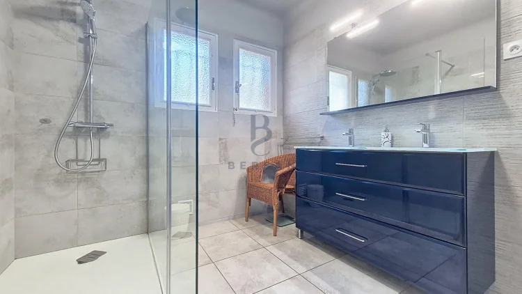 The garden level offers an independent T2 apartment of 65 m² including a large living room with dining room, a bedroom, a kitchen and a shower room, ideal for entertaining or considering a rental project.