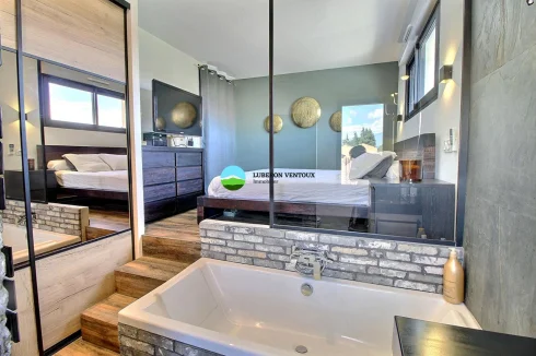 Only at Luberon Ventoux real estate in Caromb. Come and discover this splendid house for sale, located near the village of Aubignan. It consists of a large living room of approximately 54 m² with an equipped open-plan kitchen, six bedrooms and numerous amenities, including two bathrooms, a shower room and five toilets. This house with tree-lined terraces of 1178 m² with swimming pool and pool house, offers a clear view of the garden. Built in 1989 and in perfect condition, it benefits from heating via heat pump, a sewerage sanitation service, two terraces and numerous parking spaces. Several quality services complete this set, such as a fireplace, a bedroom on one level, double glazing, automatic watering, a laundry room, an automatic gate and above all absolute tranquility. Located in the immediate vicinity of the charming town of Aubignan, in the Vaucluse department, the Proche village sector offers a pleasant and peaceful living environment. This residential area, dotted with Provençal houses, is surrounded by the magnificent landscapes of the Dentelles de Montmirail and Mont Ventoux. It stands out for its tranquility, while offering its residents easy access to the amenities of the town of Aubignan, including shops, schools and health services. The Near Village sector is also endowed with a rich cultural and historical heritage, making it a destination of choice for savoring the charm of Provence.