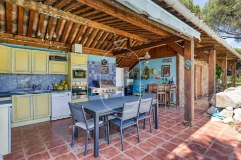 The beautifully landscaped garden maximizes the use of flat spaces while remaining easy to maintain thanks to extensive terracing. It includes a double swimming pool, a jacuzzi, and a fully equipped summer kitchen with a sauna, shower, and toilet. The garden is primarily composed of low-maintenance Mediterranean plants.