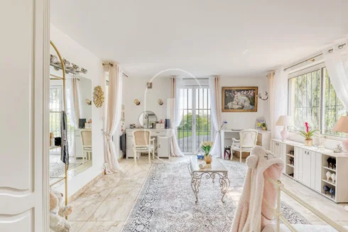 This Provençal-style villa, located in a private estate, offers absolute tranquility and breathtaking views of the Mediterranean Sea and the surrounding hills.
