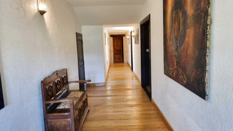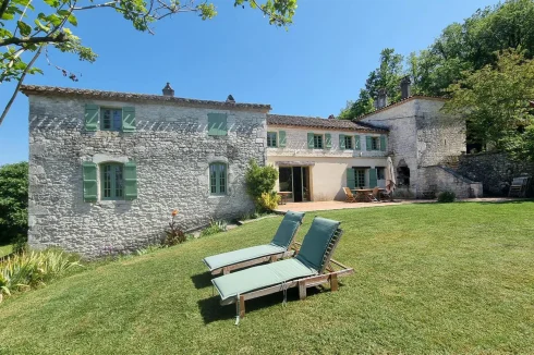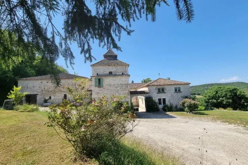 A magical place for lovers of nature and tranquility... Unique in Quercy, nestled high up near a beautiful medieval village, this remarkable manor was built in the 14th century overlooking and benefits from its dominant position from an exceptional panoramic view of the valley, surrounded by hills of the Pays de Serres. It is composed of different main buildings built over time, between the 13th and 17th centuries, caretaker's house, barn, stables, garage. A porch with its wrought iron gate gives access to the beautiful interior courtyard and its dovecote. The main building 420 m2 benefits from beautiful architectural elements, its period floors on the ground floor, several monumental fireplaces, beautiful doors, some mullioned windows, oak parquet floors in the bedrooms, a beautiful oak staircase leading to the upper floor of the house, beautiful reception rooms, including a large living room of 43.92 m2 for guests, the private blue living room of 43.92 m2 opening onto a terrace facing the infinity pool, office / library 32.75 m2, large dining room 62.71 m2, a beautiful separate kitchen 32.40 m2 to prepare good meals served on the terrace or in the interior courtyard 6 en suite bedrooms all of which benefit from the breathtaking view of the valley. The largest bedroom 38.72 m2 and the smallest 15.63 m2. Each of the bedrooms has a shower room or a bathroom. The barn adjoining the manor has been converted into a reception room for seminars or other festivities with a shower room, laundry room and workshop area for gardening. The guest or caretaker's house has an entrance, fitted kitchen, lounge / living room, three bedrooms, two shower rooms and a private terrace. The recently built independent stables can be converted into a workshop. This entire property is on nearly 20 ha of land composed of meadows and woods without forgetting the spring which supplies part of the property Net seller price: €1,250,000 - Agency fees 4% including tax payable by the seller. Information on the risks to which this property is exposed is available on the website. Diagnostics are currently being carried out