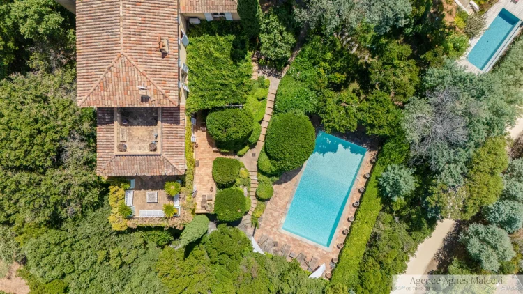 Le Rayol Canadel - Just 180 meters from the sea, in the heart of a privileged site in Rayol-Canadel, this villa, built in 1990 by architect Georges Grateau and decorated by Jean-Paul Faye, combines prestige, authenticity, and lush nature. At the end of a beautiful driveway lined with greenery, the property is revealed, nestled in a landscaped park of over 4,260 m2. It offers approximately 380 m2 of living space spread over 4 levels, served of course by an elevator, completed by an 81 m2 caretaker's house, two garages (18 m2 + 15 m2), and two cellars. The property also offers a 12.5 x 6 m swimming pool, hidden from view, as well as several parking spaces. Facing southwest, the villa enjoys panoramic views of the sea, Cap Nègre, and blazing sunsets. Although built in 1990, its interior reveals a soul of yesteryear, almost timeless, where the materials, volumes, and decoration tell stories. Here, each room exudes the charm of Provence: old stones, patinated shutters, cozy lounges, and flower-filled terraces offer an authentic atmosphere, inherited from a prestigious past. More than a contemporary villa, it is a refuge where today's elegance meets yesterday's character, a rare symbiosis of modern comfort and traditional spirit. For lovers of charm, history, and authenticity by the sea. Ready to discover this extraordinary gem and feel all its magic? Contact me to arrange a visit and let yourself be seduced. Georgelin Malecki - Real Estate Consultant - Rsac Le Rayol Canadel - Just 180 meters from the sea, in the heart of a privileged site in Rayol-Canadel, this villa, built in 1990 by architect Georges Grateau and decorated by Jean-Paul Faye, combines prestige, authenticity, and lush nature. At the end of a beautiful tree-lined driveway, the property reveals itself, nestled within a landscaped park of over 4,260 m2. It offers approximately 380 m2 of living space spread over 4 levels, served of course by an elevator, complemented by a caretaker's house of 81 m2, two garages (18 m2 + 15 m2), and two cellars. The property also features a 12.5 × 6 m swimming pool, hidden from view, as well as several parking spaces. Facing southwest, the villa enjoys a panoramic view of the sea, Cap Nègre, and the blazing sunsets. Although its construction dates back to 1990, inside it reveals a timeless soul, where materials, volumes, and decor tell their stories. Here, every room breathes the charm of Provence: old stones, weathered shutters, warm living rooms, and flower-filled terraces create an authentic atmosphere, inherited from a prestigious past. More than a contemporary villa, it is a haven where today's elegance meets the character of yesterday? a rare symbiosis of modern comfort and traditional spirit. For lovers of charm, history, and authenticity by the sea. Ready to discover this extraordinary gem and feel its magic? Contact me to arrange a private viewing and let yourself be enchanted. Georgelin Malecki? Real Estate Consultant? Rsac