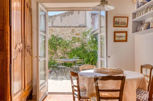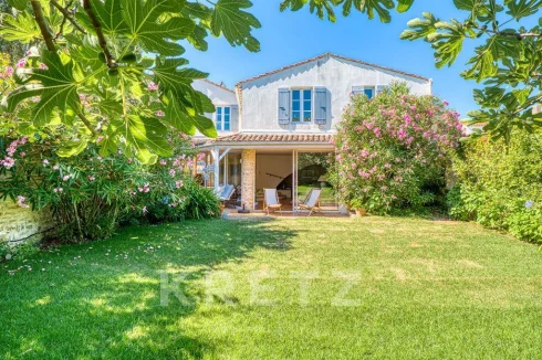 Ars en Ré, village center: 168m2 house offering quality of life close to shops and port. Separate kitchen, dining room, spacious living room with fireplace opening onto flowered garden with trees, pleasant in all seasons, patio.