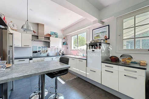 Of approximately 210 m², it offers a beautiful living room with open kitchen and a bright veranda extended onto the garden. Six main rooms, including five bedrooms, are spread over two levels, with shower rooms and storage.