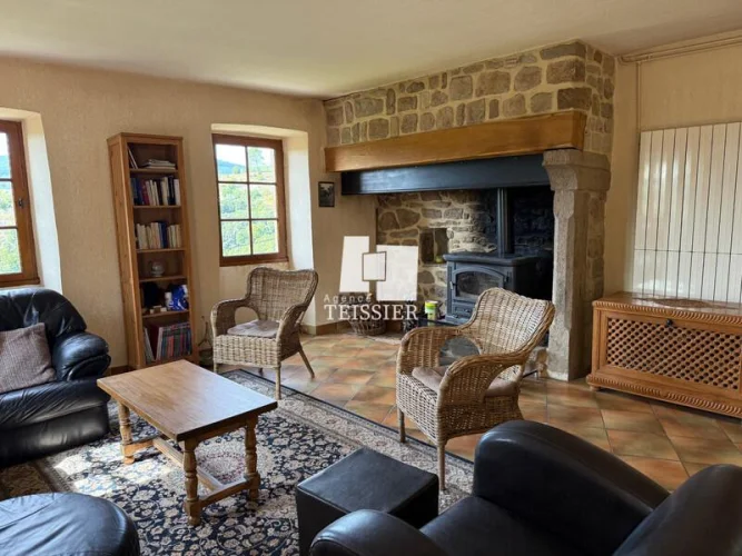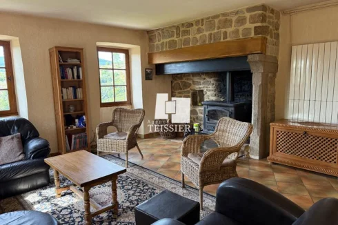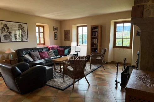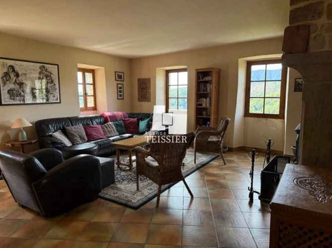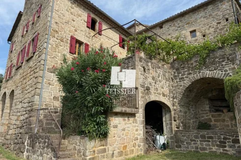 On the south hillside, in a quiet area and less than 10 minutes from Les Vans, this property, partly from the seventeenth century, has been completely restored with taste. It consists of a main part of about 150 m², a gîte (two bedrooms, living room, kitchen) and an annex (two bedrooms, shower room/wc). Approximately 2.8 hectares of land with an olive grove (production of about 180 kg), two springs, swimming pool, ideal family home.