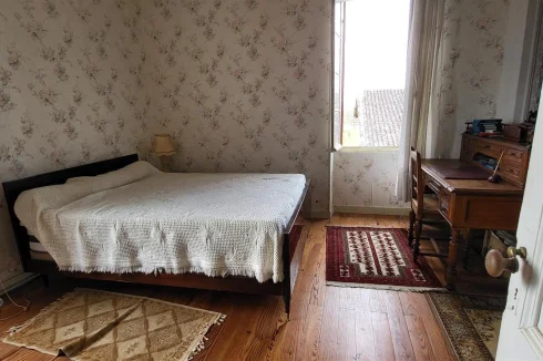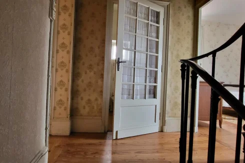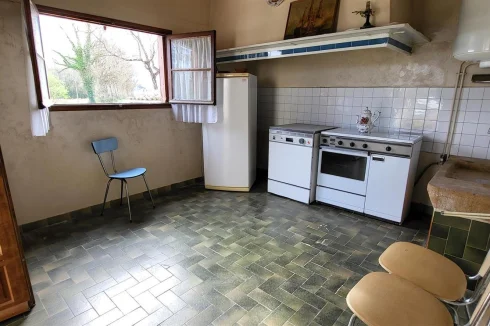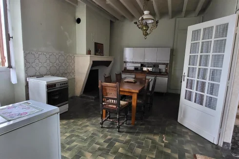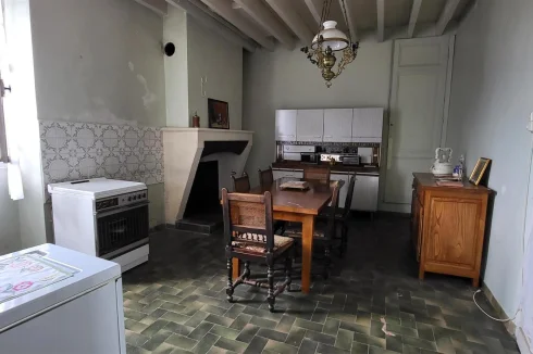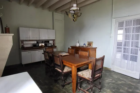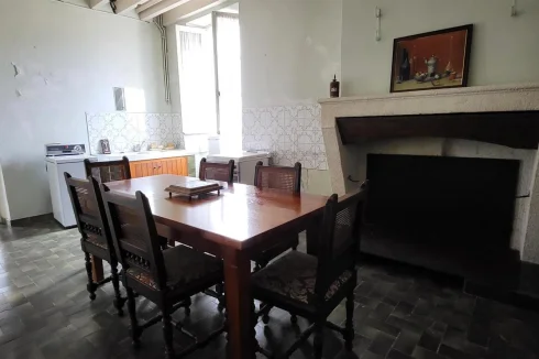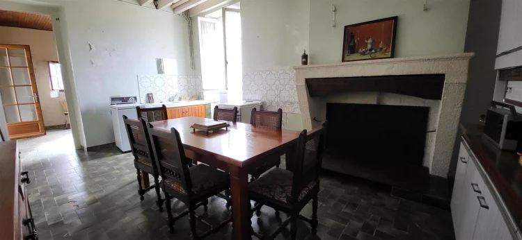 The house is composed on the ground floor: a large terrace gives access to a spacious entrance, a kitchen with a large fireplace, a back kitchen, a living/dining room with a fireplace and a beautiful solid parquet floor.