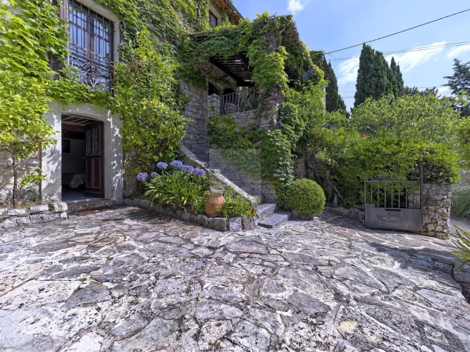 Rare!! In the heart of a real green setting, let yourself be seduced by this splendid house (approximately 180m2) of character which embodies the very essence of Provençal charm. Nestled in a dominant position and enjoying absolute calm, this exceptional residence offers a most privileged living environment, just a few steps from the picturesque village of La Colle-sur-Loup, all on a magnificent wooded area of 1935m2. As soon as you arrive, the entrance hall invites you to discover an interior space imbued with conviviality. A dining room, bathed in light, is nearby. Adjacent to it, the independent kitchen, renovated and refined, opens onto a large living room offering a magnificent view of a sparkling swimming pool, thus creating a perfect symbiosis between the interior and the exterior. Upstairs, a charming landing serves with finesse three spacious bedrooms, real cocoons of tranquility. An elegant bathroom with Wc completes this space. Opening onto an enchanting patio, an adjoining apartment offers an attractive alternative, which can be completely independent to accommodate family or friends. This charming space includes a warm living room, a fitted kitchen as well as an office and a bedroom with shower room and Wc, promising absolute comfort in an intimate and peaceful setting. The ground floor holds additional surprises with a cellar for wine lovers, as well as two independent studios. One of them, equipped with a kitchenette and a bathroom with Wc, is a true haven of tranquillity. This exceptional property also has two building plots, offering you great development prospects. On the smaller plot, a dedicated parking space can easily accommodate up to six cars, providing a convenient solution for you and your visitors. Ideally located, this residence of character enjoys an authentic style and a unique atmosphere that will seduce you at first sight. Its privileged location, combined with its multiple layout possibilities, make it a real favorite, a real haven of peace out of sight, where life is good.
