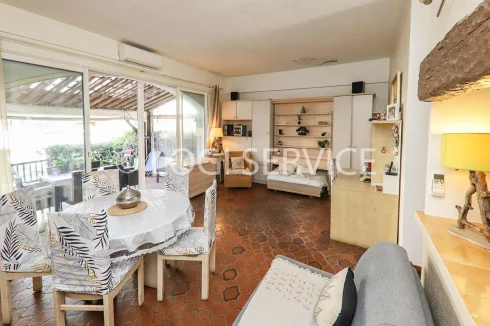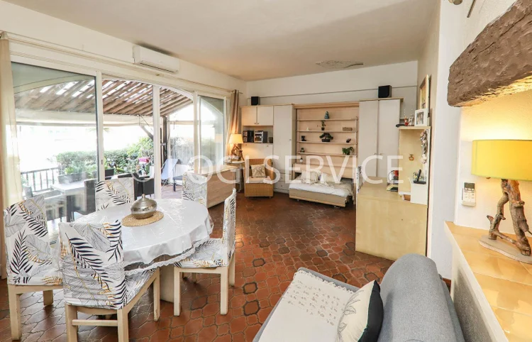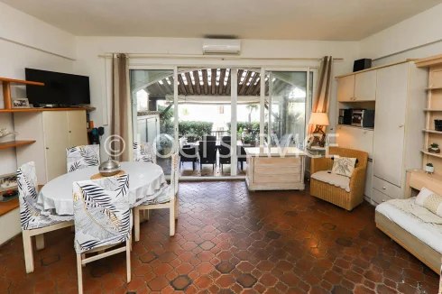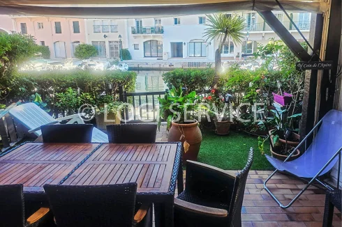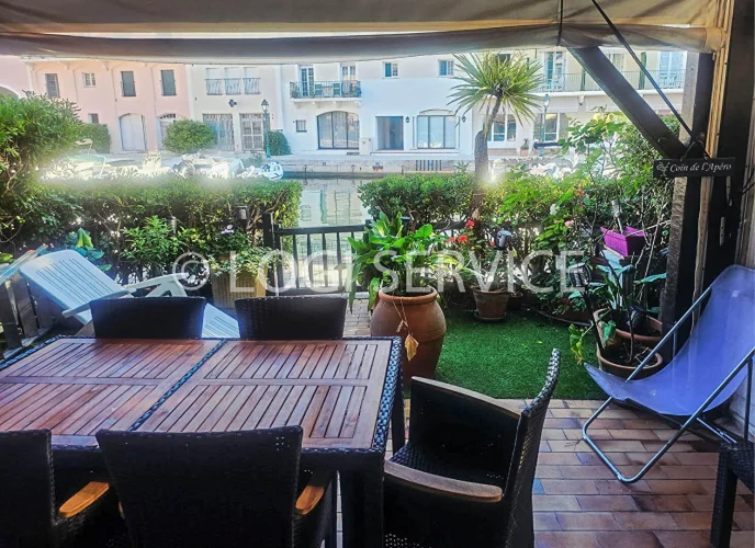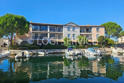 In the heart of the Cité Lacustre, a ground floor apartment, an entrance hall with a bedroom, a shower room with Wc, an open kitchen opening onto the living room and the terrace in the extension. View of the typical canals of Port Grimaud. Unnumbered parking space. Ideal for year-round living or for holidays.