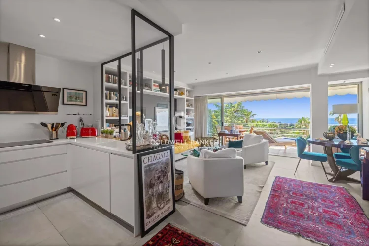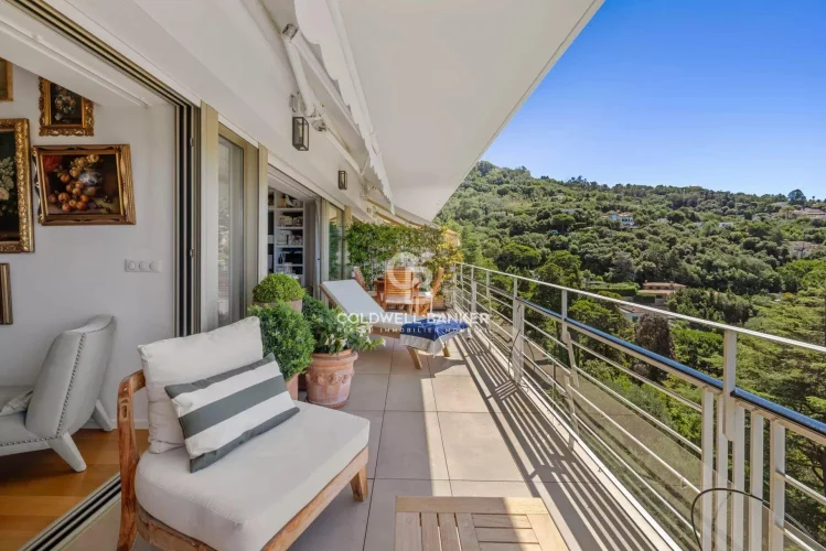 Located in the heart of one of the most sought-after residences in Cannes Californie, this stunning 2-bedroom apartment of 80 m² boasts a breathtaking panoramic sea view over the Bay of Cannes and the Esterel hills.