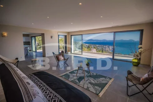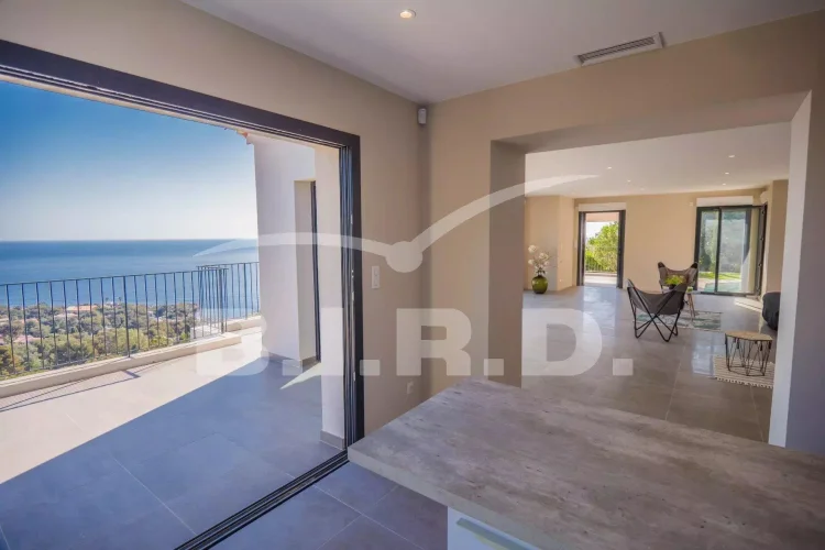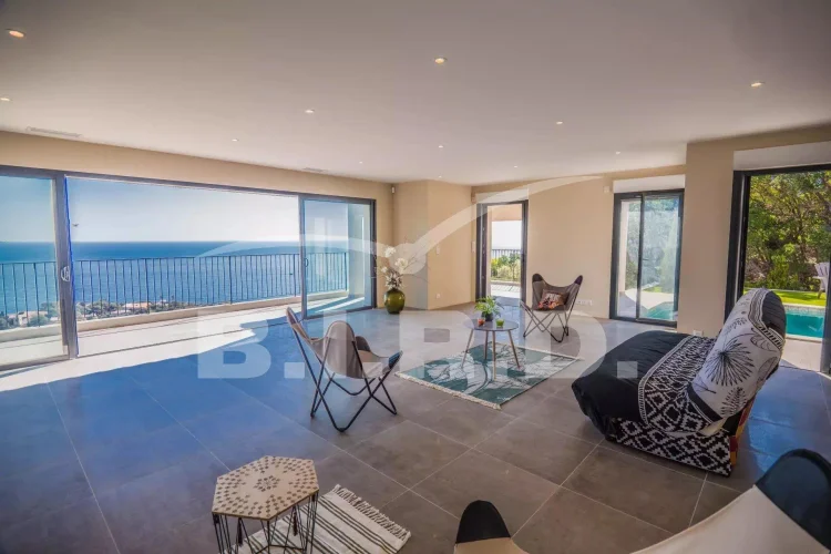 Les Issambres, walking distance to the beach, enjoying an exceptional 180° panoramic sea view Modern Villa composed of a large and luminous living room opening onto beautiful terraces and the swimming pool area. All rooms have their own bathroom (whirlpool bath for the master-bedroom). One of them is independent. Peaceful, no overlooking, breathtaking views. Garage with direct access to the kitchen