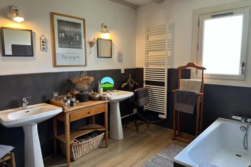 The house also has an independent kitchen with dining area perfect for convivial moments, as well as a warm living room with fireplace offering an authentic atmosphere.