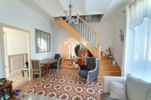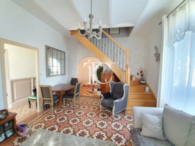 On the ground floor, a living room, a living room and a fitted kitchen, an 18m² bedroom, bathroom and Wc. Upstairs a bedroom and an office under the eaves with a lot of charm. Raised on total basement with workshops. Beautiful vaults and cement tiles for lovers of the old. Shops and services within walking distance, quiet and pleasant area, nice view.