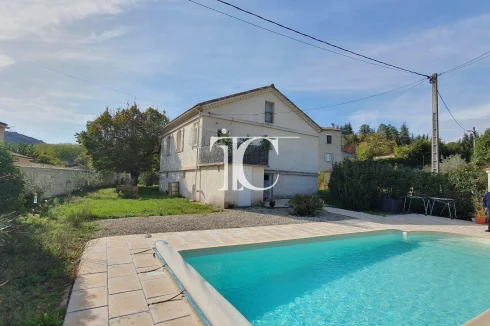 For sale, on the edge of Gard-Ardèche, Saint-Ambroix, Old stone house of 115 m² with a lot of character and very pleasant with adjoining garden of 840m² with a 4x9m salt water swimming pool with pool house.