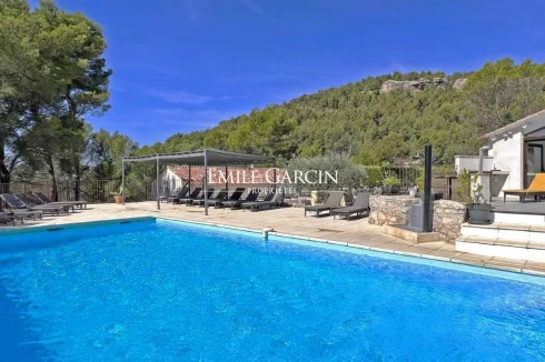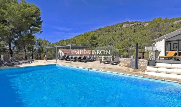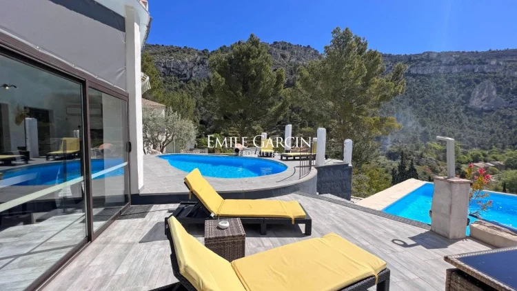Overlooking an iconic village in the Luberon, just 5 minutes from the Isle sur la Sorgue, this property of approximately 420 sq.m is surrounded by exceptional landscapes. It comprises three separate accommodation units designed to ensure comfort and privacy. The main house of approximately 200 sq.m offer a bright and spacious interior with stunning views, including six bedrooms. The two other units (approximately 100 sq.m and 120 sq.m) present a total of eight additional bedrooms, making them ideal for hosting family or friends. Sitting on 5,800 sq.m of landscaped grounds the property features several relaxation areas and two swimming pools, one of which is heated. This is a rare find, offering spacious living areas and a prime location in the heart of the Luberon.