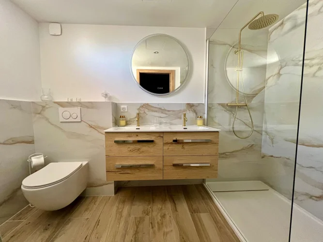 Nestled on the 7th and top floor, it boasts bright, south-west exposure, unobstructed views and modern, top-of-the-range amenities. With a generous surface area of 89 m², it comprises a 41 m² living room with an open-plan kitchen, a master suite with its own shower room and toilet, and two bedrooms extended by a terrace. A second shower room with toilet completes the night space.