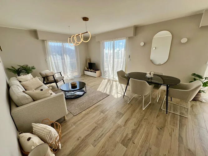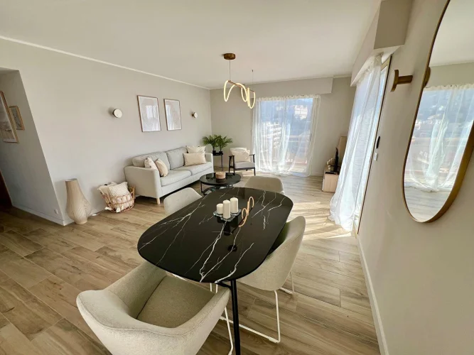 Located in the quartier des Anglais, just a few minutes from downtown Cannes, this 4-room apartment, entirely renovated by an interior designer, offers an exceptional living environment.