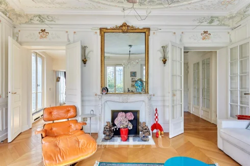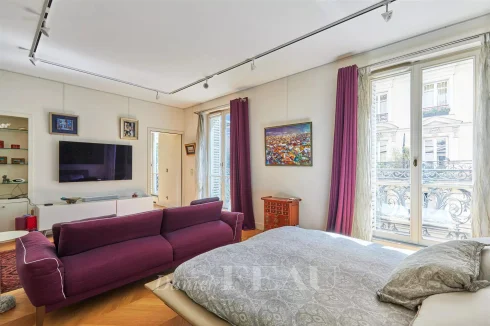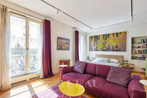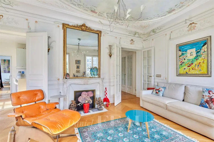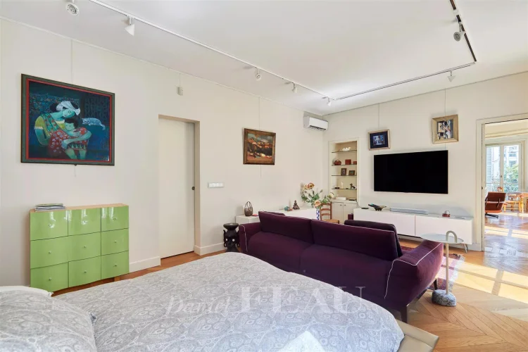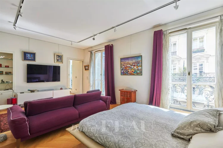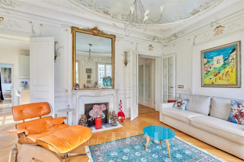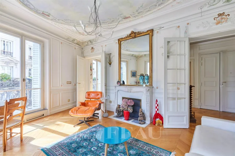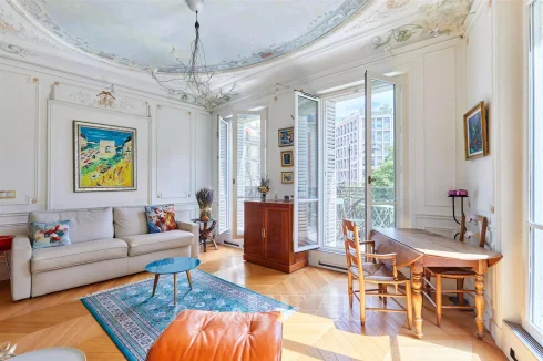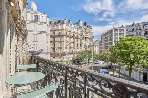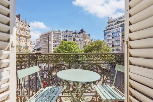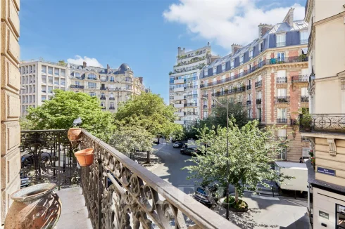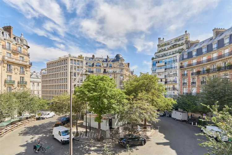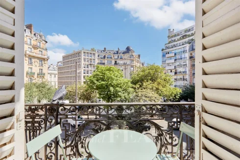 This meticulously renovated apartment on the 2nd floor of a fine mid 19th century building benefits from a continuous balcony and commands a superb open view of Place Saint-Ferdinand.