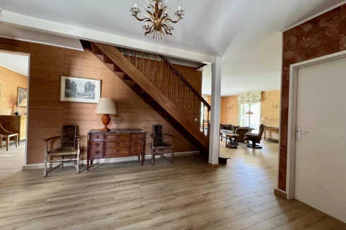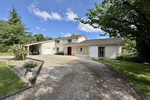 Close to the town centre and shops on foot, this house built in 1984 of about 242 m2 consists on the ground floor of a large entrance hall with cupboard, living room of about 61 m2 with open double hearth fireplace and distribution vents leading out onto terraces, separate kitchen opening onto west terrace with electric awning, office that can be used as a bedroom, master suite of about 40 m2 with dressing room-bathroom and toilet, laundry room opening onto covered west terrace, pantry, toilet with separate washbasin, garage and carport. Upstairs, a landing leads to two beautiful bedrooms of 17 and 20 m2, bathroom with toilet, two storage rooms. Workshop and garden shed. The heating is electric by convectors. The joinery is made of aluminum. The attic was insulated in 2021 with blown glass wool. Well with integrated watering and possibility of capturing the water of the Lot which is at the bottom of the land. Intercom and electric gate. Sanitation with all sewerage in compliance. You will be seduced by the volumes of this comfortable house, the luminosity provided by the bay windows, the distribution of the rooms and the garden of about 2511 m2 very nicely planted with trees and landscaped.