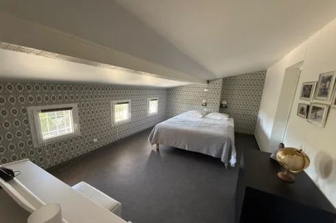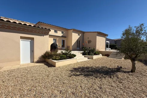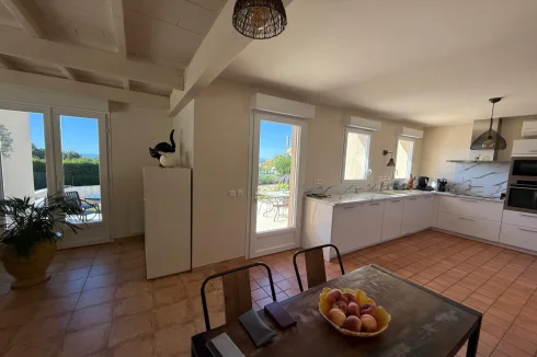 Uzes 7 km away, in a village with shops: Fully renovated villa from 1995, approx. 158 m² on 1643 m² of beautifully landscaped grounds with a 10x4m saltwater pool.Spacious entrance, open-plan living room, dining area, and Schmitt-equipped kitchen, all spanning 55 m², opening onto 2 terraces (south and west) with lovely views, laundry room, workshop, 2 bedrooms on the ground floor, bathroom, toilet, dressing room.Upstairs: Mezzanine area, 2 attic bedrooms, shower room with toilet.Reversible air conditioning. Mosquito nets, bioclimatic pergola, exposed aggregate concrete, new roof. Nothing missing, no work needed!