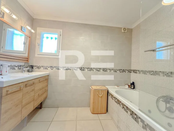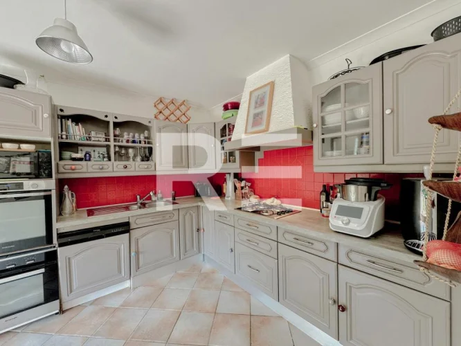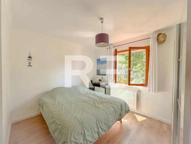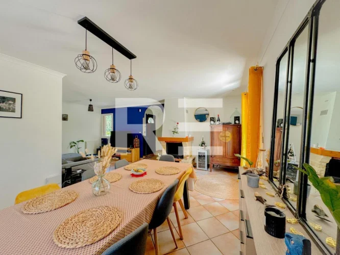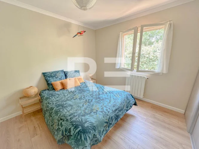 The exterior is not to be outdone. On a plot of 904 m2, this large space allows you to park two vehicles in the garden (north flank), as well as to enjoy on the south flank the various pleasant facilities: terraces, garden with trees, traditional swimming pool and its beach (secured), barbecue area...