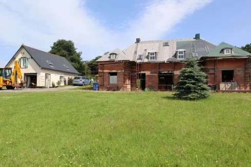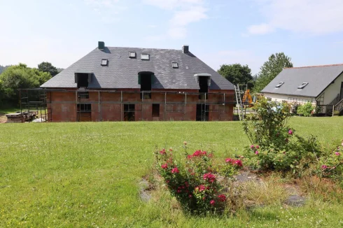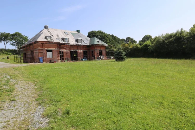 5 minutes from Carhaix, house comprising: living room with kitchen area, 2 bedrooms and a shower room. Garage and workshop part. A second house (280m² project) to be finished (interior design to be done completely). Project stopped, health cause. The whole on 5930m²