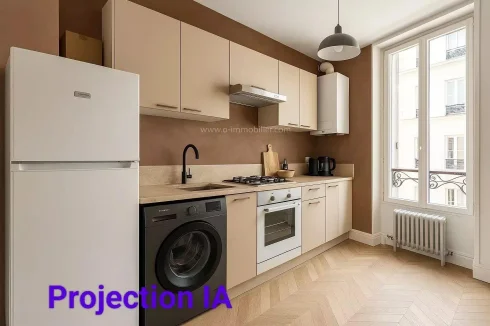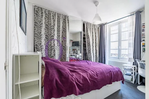 It is composed on the street side of a living room with two windows, a bedroom with a window (bedroom that can be joined to the living room) and on the courtyard side of a large bedroom with storage, a kitchen and a shower room with toilet.