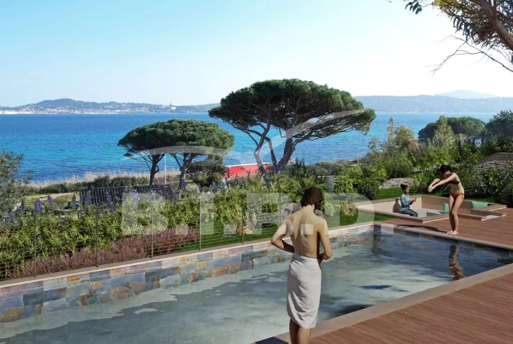 On the top and last floor of a prestigious residence with a swimming pool and elevator, this exceptional apartment offers breathtaking panoramic views over the Bay of Saint-Tropez. Spacious and filled with natural light, it features a large living room with wide sliding glass doors opening onto a terrace – perfect for enjoying the spectacular scenery of the Gulf of Saint-Tropez.