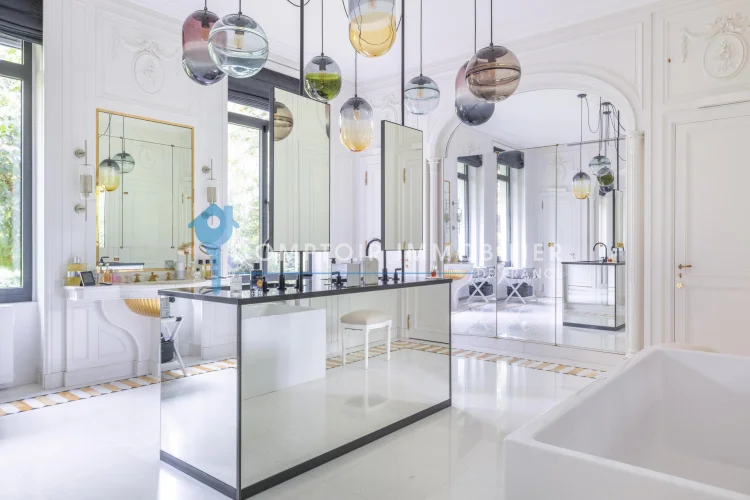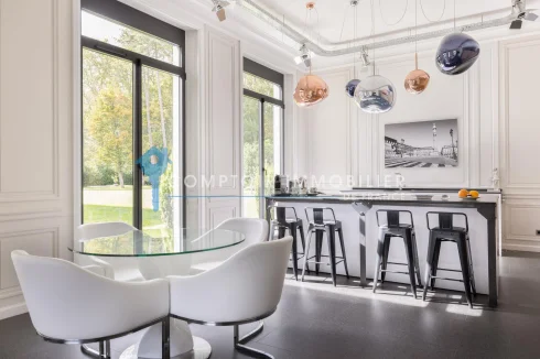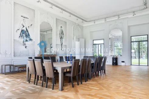 Nestled in a 13-hectare, fully enclosed, wooded riverside estate, this exceptional property boasts 1,032 m2 of living space. The interior blends authenticity and elegance: refined woodwork, Versailles parquet flooring, monumental period fireplaces, and decorative moldings. The house offers a reception area of 400 m2, completed by 4 double suites, 2 suites, 2 bedrooms and a separate apartment with 2 bedrooms, for a total of 8 bedrooms and 6/7 bathrooms. The main house consists of a large entrance gallery leading to a reception room, living room and two adjoining lounges. A bar with relaxation room, a family kitchen with scullery and a separate suite (with living room, second kitchen, bedroom, bathroom, shower and dressing room). Upstairs, 6 bedrooms including 5 suites and 1 with dressing room. A separate apartment comprising a living room, fitted and equipped kitchen opening onto the dining room, 2 bedrooms, shower room and laundry room. The property also has a wine cellar, workshop, double garage, technical room, children's play area... Also ideal for an event, wedding, seminar, private event... Comptoir Immobilier De Normandie ? Gilbert Geneste ? - Marie Nguyen - ? Ei Commercial Agent Rsac N ? City of the registry: Evreux ? More information on (ref.20481) ?