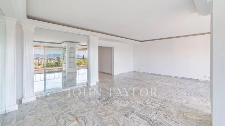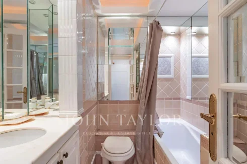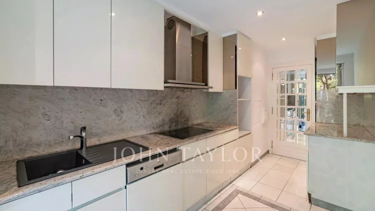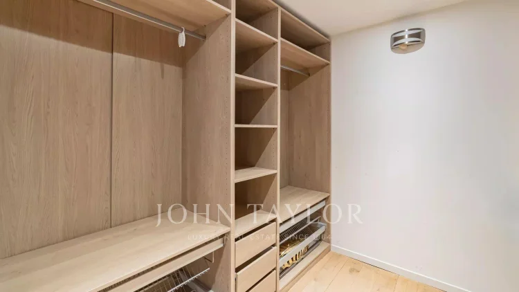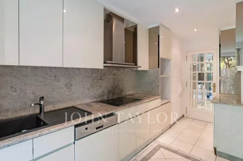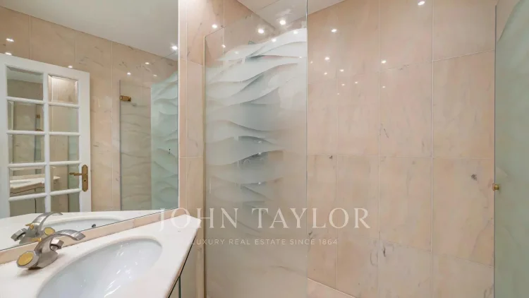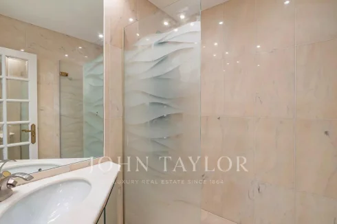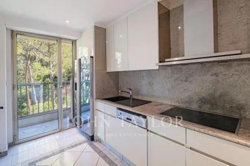 This elegant apartment features a vast double living room (a 3rd bedroom can easily be created if required), a separate fully-equipped kitchen, two spacious bedrooms and two bathrooms. A pleasant 15 m² terrace faces southwest.