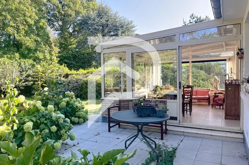 Located in the charming town of Autingues, just 2 minutes from the historic town of Ardres, its shops and amenities, and 20 minutes from the beaches, this single-story house will charm you with its brightness and panoramic view from the living room. Located in the heart of a magnificent wooded park, this house offers a beautiful distribution of spaces between the living area and the sleeping area. On the sleeping side, you will find two bedrooms, a bathroom, a laundry room and a separate toilet. On the living side, a fitted and equipped kitchen opens onto a vast living room bathed in light, extended by a large veranda ideal for enjoying the green setting in all seasons. The services are completed by a garage that can accommodate three vehicles, a large convertible attic with parquet flooring, as well as a small cellar. A rare property in a peaceful and green environment, ideal for lovers of nature and tranquility.