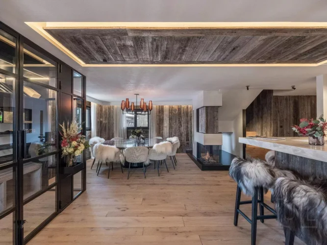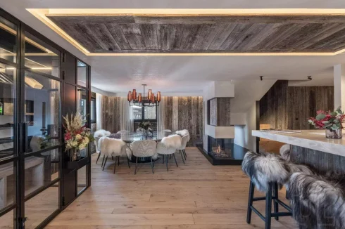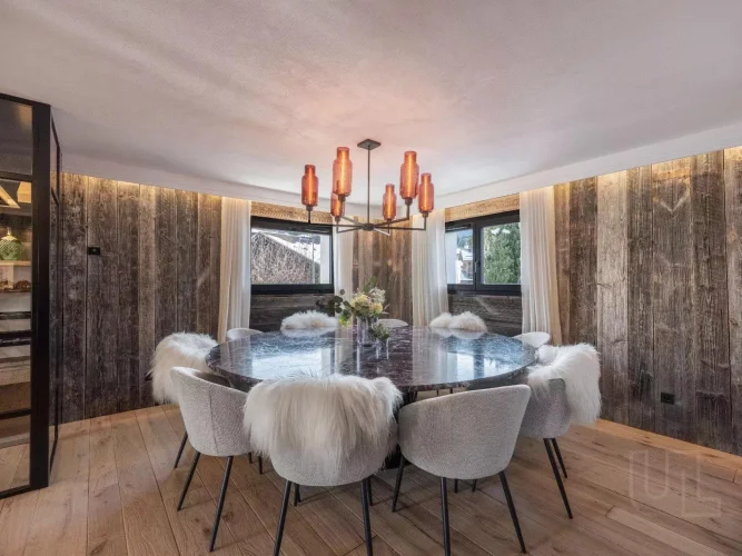 In the heart of Megève, just steps from the pedestrianised centre, this exceptional 500 sq.m chalet redefines mountain living, blending luxury, cutting edge design and absolute comfort. Fully refurbished by renowned architects, the property occupies a prime location that offers immediate access to the town’s shops and restaurants, while still preserving the privacy and calm of one of Megève’s most sought-after neighbourhoods.