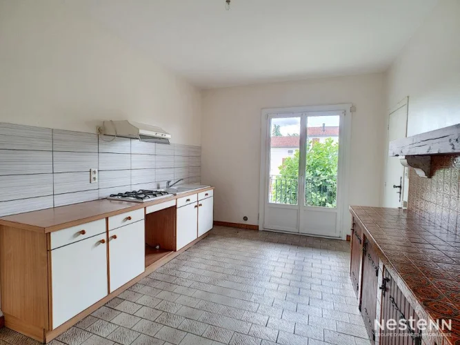 Sale of a house with garden comprising two apartments (one of which is sold rented). The apartment with a tenant in place is located on the ground floor. This apartment offers a surface area of approximately 90 m² and consists of a beautiful living room, a kitchen, two bedrooms, a bathroom and a toilet. On the first floor you will have a spacious apartment of 135 m². A landing leads to a day area consisting of a 16 m² kitchen and a scullery as well as a large 30 m² dining room with an open fireplace. Opposite you will access the sleeping area which offers three bedrooms (two bedrooms of 14 m² and one of 13 m²), a bathroom, a separate toilet and a bathroom. Outside you will benefit from a balcony for each accommodation and you will also benefit from a large garage of 45 m². The 714 m² plot is fenced and wooded. Diagnostics are currently being carried out. You can discover this property in a 360° virtual tour on our site.