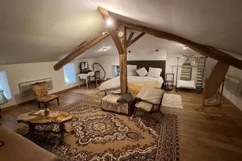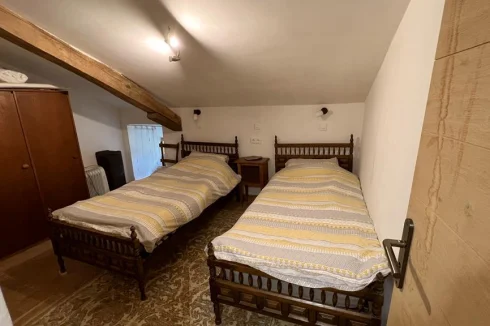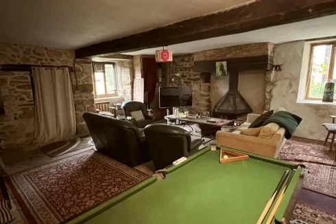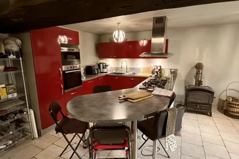 The main stone house retains all its original rural charm, while benefiting from modern improvements. It features exposed stone walls, oak lintels and niches carved into the thick walls. The fully equipped kitchen has contemporary fittings, a central island with a dining area, a large gas hob and a pellet stove. Heating is provided by a combination of wood and pellet stoves, an air-to-air heat pump and electric radiators. The electrical installation is three-phase. The septic tank complies with current standards.