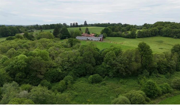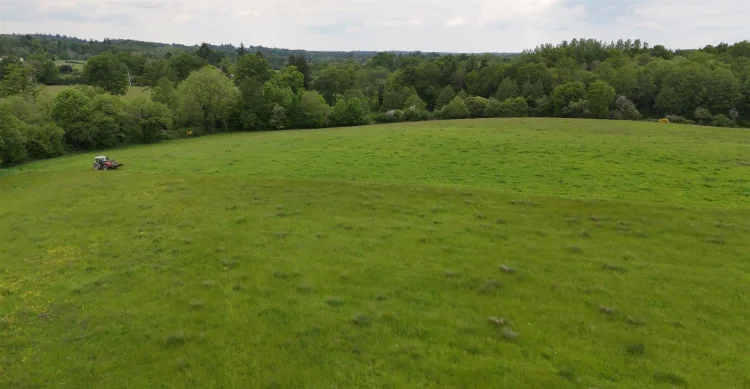 The land comprises approximately 22 hectares of meadows and 6 hectares of woodland. The meadows are currently leased to a neighbouring farmer under a rural lease, generating a modest annual income while maintaining the land in good condition. The farmer is open to discussion about vacating the land if required, offering the possibility of resuming direct farming depending on the project.