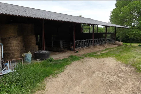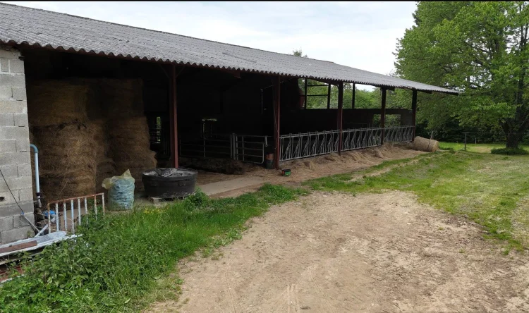 The farm buildings include two stone barns, one of which is equipped with a lift, a hayloft and a cattle shed with 21 feed barriers, as well as space for storing hay and equipment or for converting into stalls.